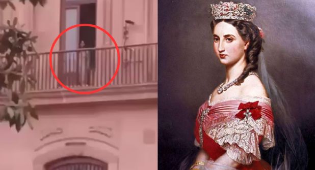 La escena muestra cómo la figura se asoma brevemente por el balcón del edificio para luego tomar distancia y alejarse de la vista de la cámara que alcanzó a videograbarla.