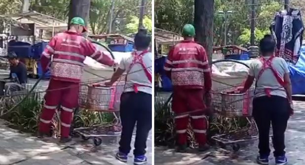 “Cachan a esta vendedora de elotes cuando llena sus botes de agua de riego que le da el jardinero del parque. Y el de parques y jardines prestándole para eso”, lamentó el Grupo por medio de su cuenta de X.