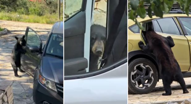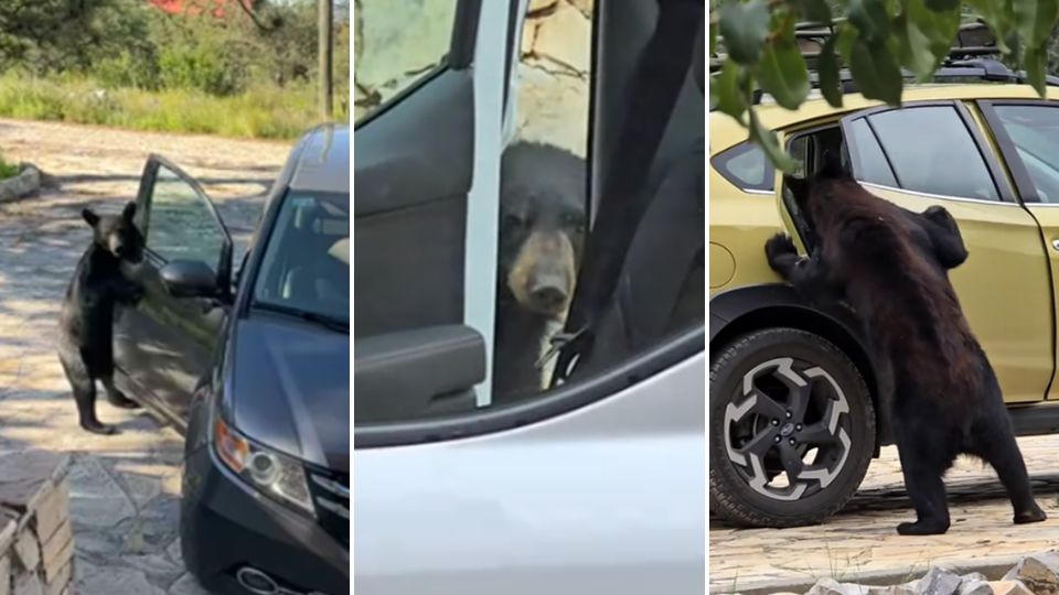 Eso no fue todo porque el mismo oso se movió hacia un tercer vehículo, cuya puerta también fue abierta, lo que provocó las risas de las personas que estaban apreciando el curioso momento.