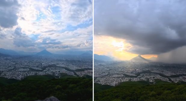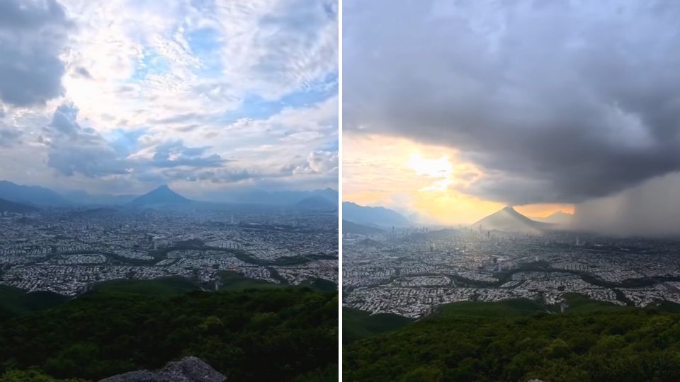 Y desde las alturas, justo en el teleférico del Cerro de la Silla, el senderista Daniel Martínez compartió un video en el que muestra cómo fue evolucionando el clima en la ciudad, pasando de ser un día medio nublado a una tarde lluviosa.