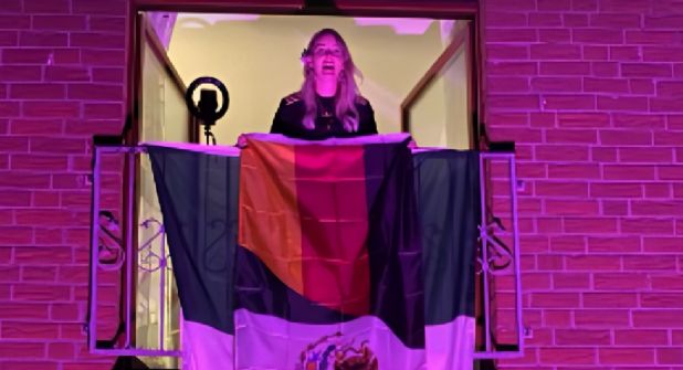 México.- Una alemana se volvió viral al unirse a la tradición mexicana del Grito de Independencia, recreando la ceremonia desde el balcón de su casa junto a su familia y amigos.