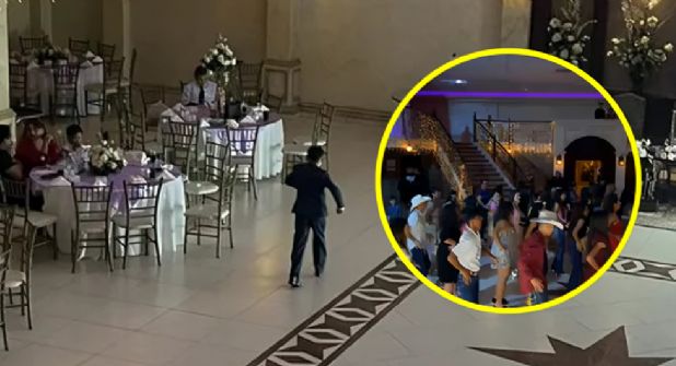 Tras la ceremonia religiosa, la quinceañera conocida como Miche y su familia llegaron al salón Hacienda El Manantial para arrancar la fiesta, pero con el paso de los minutos los lugares seguían vacíos y la pista de baile apenas contaba con unas cuantas personas.