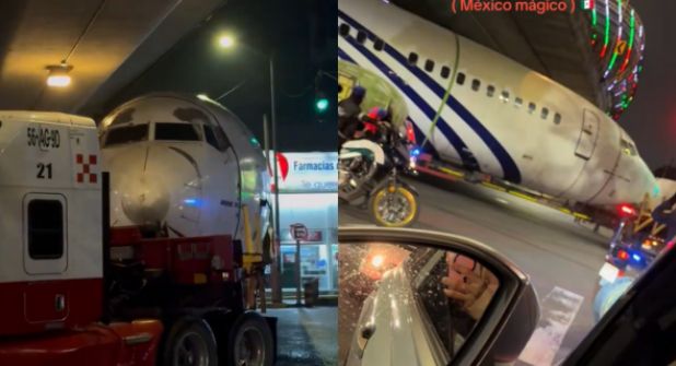Ciudad de México.- Decenas de personas quedaron en shock cuando se percataron que un avión era transportado en pleno Periférico Sur de la Ciudad de México.