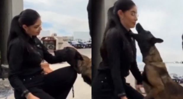 El momento tuvo lugar durante un encuentro de la alcaldesa con elementos de seguridad dedicados al manejo y adiestramiento de perros utilizados en operativos policíacos, mejor conocidos como binomios caninos.