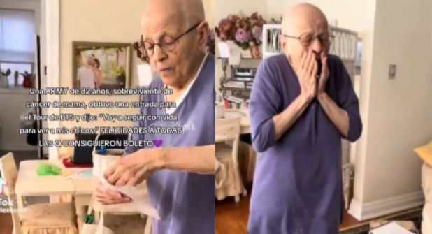 En el video se observa a una adulta mayor de 82 años, recibiendo un sobre el cual contiene los boletos para el esperado concierto, a pesar de que la publicación dura apenas unos segundo, el video rápidamente se volvió viral en TikTok.