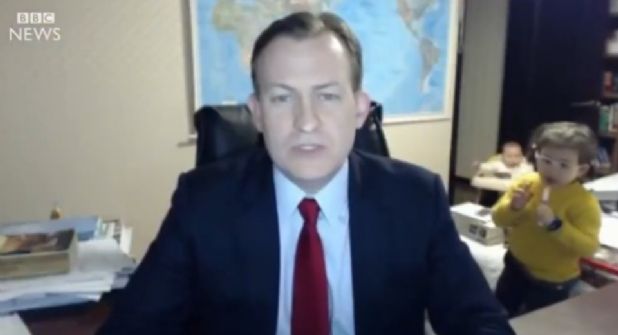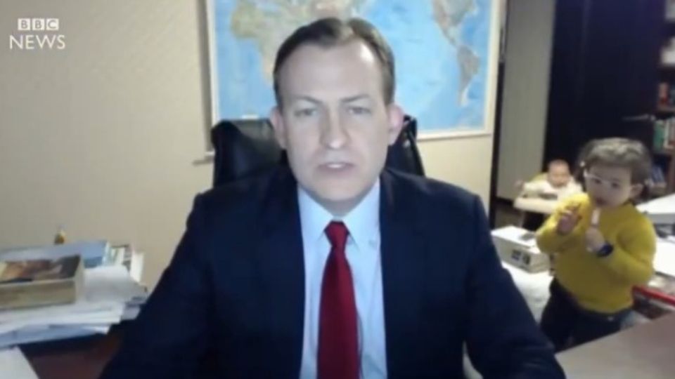 Estados Unidos.- En el 2017 el profesor Robert Kelly se viralizó en redes sociales por la chusca interrupción de sus hijos durante una entrevista en vivo con la BBC.
