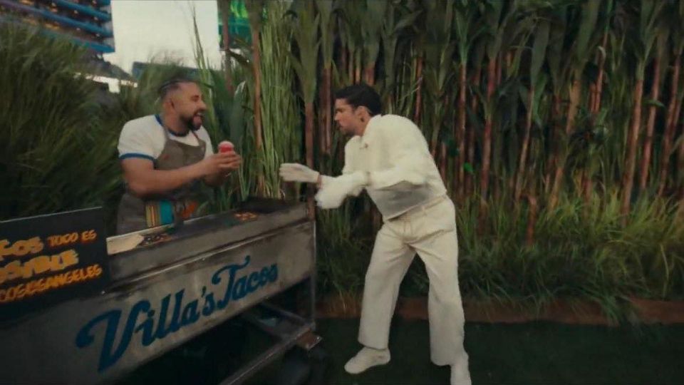 Durante la interpretación de “Tití Me Preguntó”, Bad Bunny caminó por una escenografía inspirada en la vida cotidiana de los barrios latinos: calles, música urbana, colores y comercio popular. Entre esos elementos apareció un carrito de tacos funcionando como si se tratara de cualquier noche en una colonia mexicana. El detalle no fue casual.