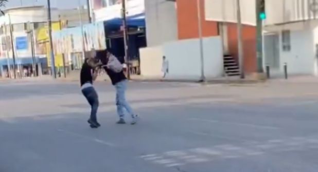 En el video es posible observar como los dos hombres se golpean a la altura del rostro y juntos caminan hacia el centro de avenida Benito Juárez, esto aumentando el riesgo de que llegara algún vehículo y se generara un accidente.